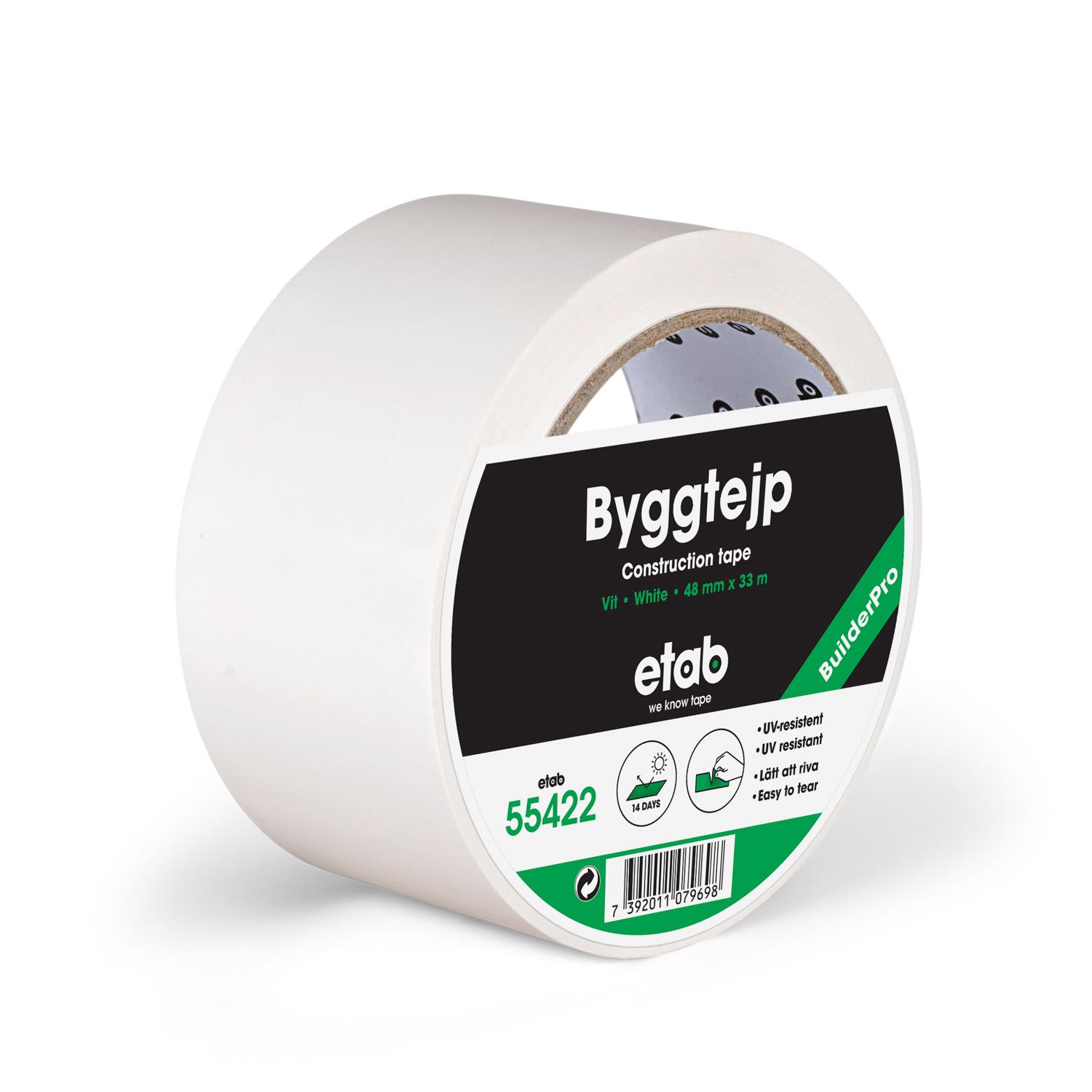 Flexible and conformable construction tape of premium soft PE-film with acrylic adhesive. Easy to tear by hand. Good UV resistance. Waterproof and has good adhesion even on rough or slightly dirty surfaces. Ideal for fixing floor protection cardboard and protective plastic for facade work. Also suitable for masking applications onto plaster, concrete and brick.