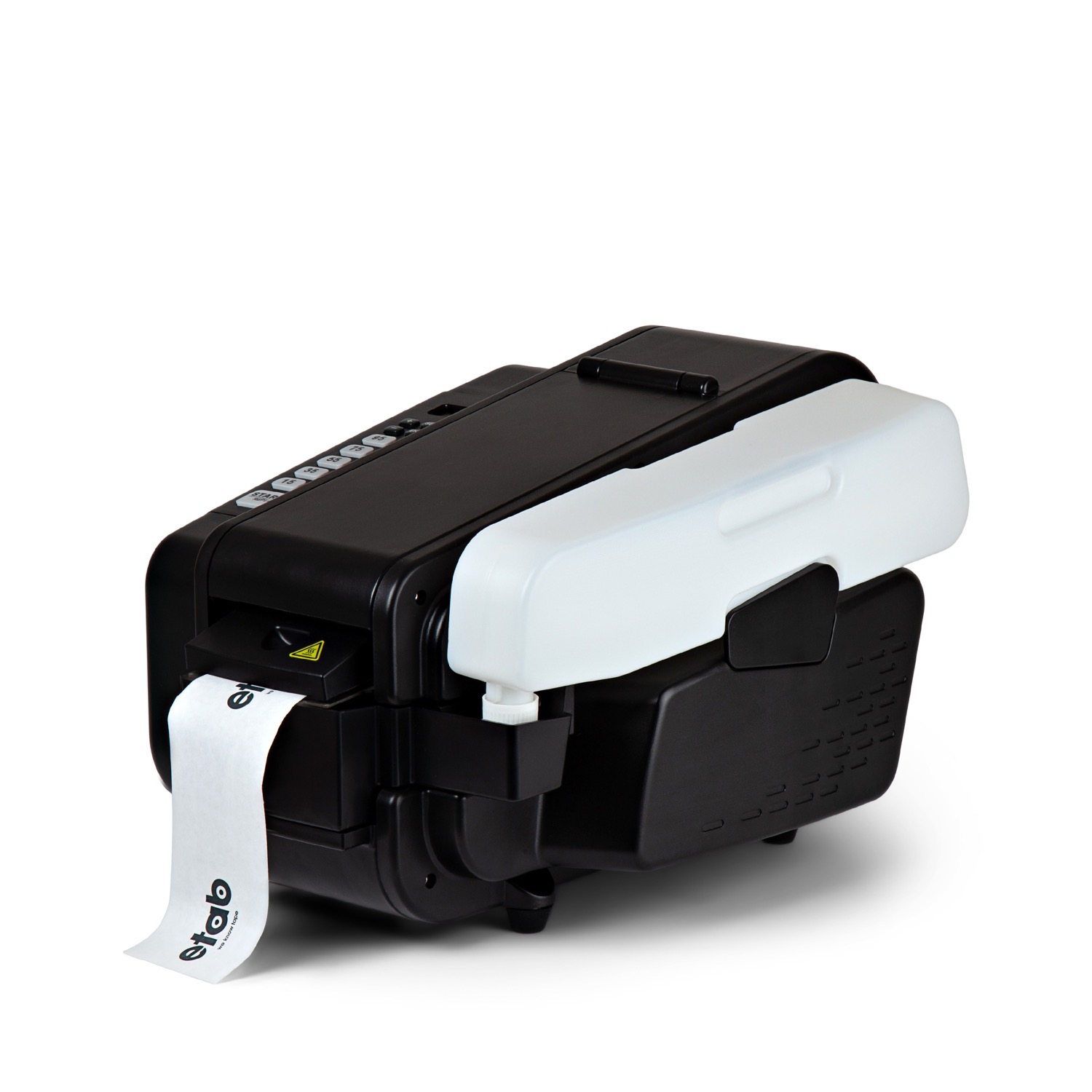 Elektrisk remsfuktare som automatisk matar ut förseglingsremsor med antingen den längd du önskar, eller till de förinställda längder som finns. En praktisk remsfuktare som snabbar upp och förenklar arbetet. Mycket användbar när du har många paket med antingen samma eller olika storlek som ska förslutas.